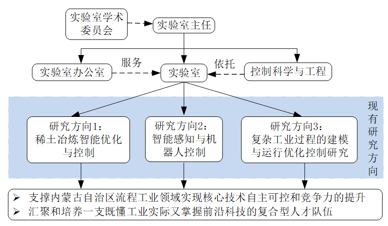 内蒙古自治区高校流程工业综合自动化重点实验室整体架构设计遵循高效、协同、创新的原则,旨在打造一个集科学研究、人才培养、技术服务为一体的综合性创新平台。重点实验室将设立学术委员会作为最高学术指导机构,负责审议研究方向、科研计划、成果评价等学术相关事务,学术委员会设主任1名,主任由国内外知名专家乔俊飞教授(北京工业大学党委副书记、国家杰青、长江学者)担任,负责召集和主持学术委员会会议,审议和决策实验室的重大学术事项。在行政架构上,设立实验室主任1名,全面负责实验室的日常管理、科研规划、团队建设以及对外合作交流等工作。实验室主任下设副主任2名,秘书1名,协助主任开展各项工作,分别负责科研管理、人才培养、设备管理、财务管理等具体事务。